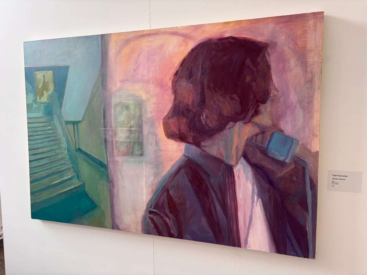 The trip to Edinburgh was one of those rare times when family life and working life aligns rather than clashes. My daughter, Tash, who graduated in Art this summer, had one of her paintings in an exhibition in Summerhall in the city and I was so moved and proud to see it actually up on the wall. It’s called Double Exposure and is based on a scene in Twin Peaks.